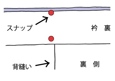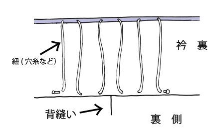※広衿の場合、衿中心に金属スナップ、紐は無料