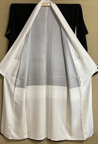 本来は、留袖や喪服、振袖などの上着の下に、白色や色無地で作った同型のきものを重ねてきていました。その後、時代が進むにつれて簡略化され、下着が裏側にくっついている本比翼となり、更に時間が経つと、生地の長さも短く軽いという理由で、見えるところだけ布が付いている付比翼(半重ね)が殆どとなりました。今までで、更に軽量化される方は、身頃を省き上前衽布(左前衽布)と衿、口・振りという方も少数いました。