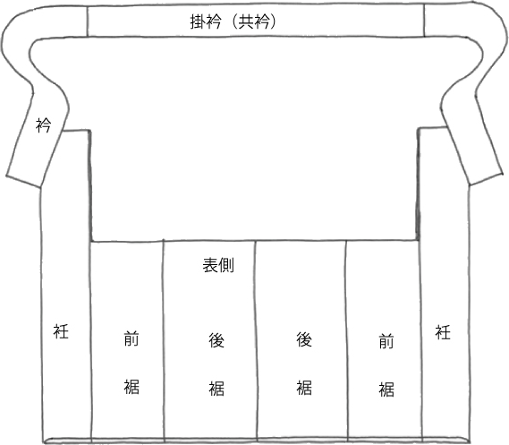 更に軽量化される方は、身頃を省き上前衽布(左前衽布)と衿、口・振りという方も少数いました。