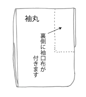 袖口側には「袖口布」、振り側には「振り布」のそれぞれ小布が付く場合と、袖を丸々作り、上着の袖付けに縫い付ける「袖丸」があります。