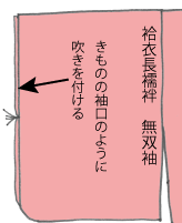 無双袖は袷衣長襦袢の袖で、表裏同じ布を使って袖を作ります。袖口にはきものと同じような「吹き」を付けるものもあります。