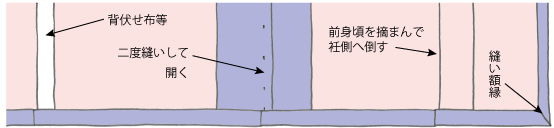 ※掛衿束付けのバチ衿・縫い代片ねせ