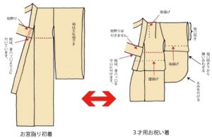 お宮詣りの袖直し、紐付け直しは以下のようになっています。